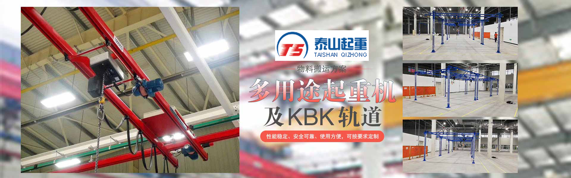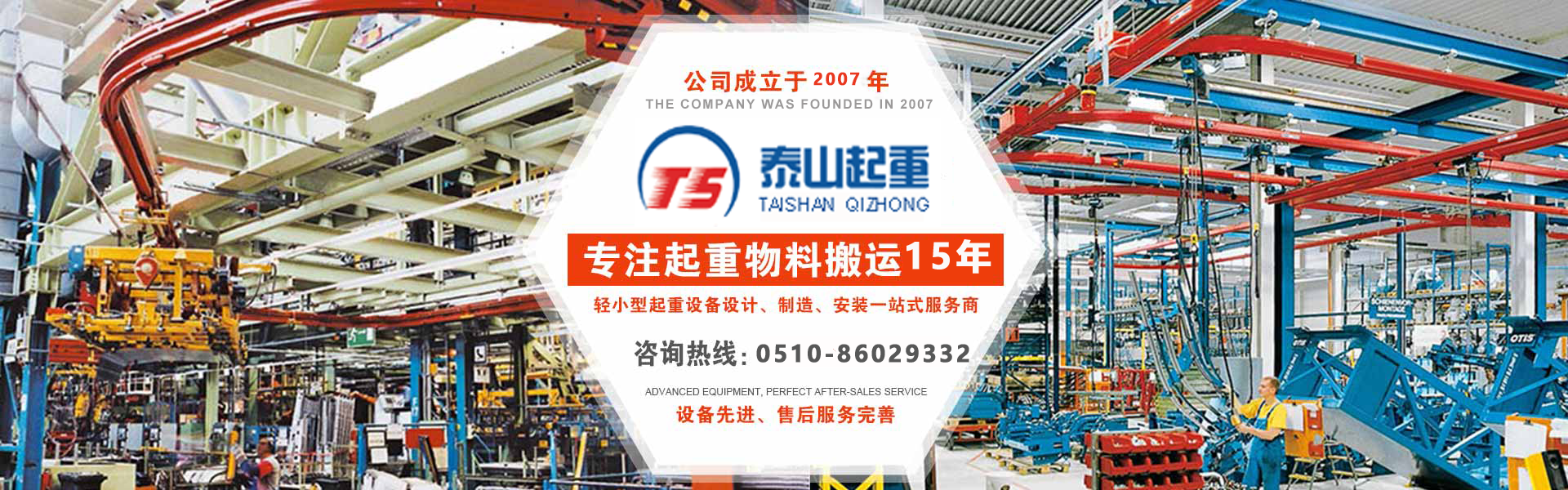 江陰市泰山起重設備有限公司座落在富庶的現代化港口城市——江陰市南閘鎮工業園區,緊靠錫澄高速,錫澄路,北依江陰港區,貫通滬寧高速的世界第四、中國第一的江陰長江大橋,穿越而過,飛架南北,高速至上海虹橋機場僅2小時,南又緊靠正在建設中的無錫國際機場,交通便捷,環境優美。  本公司專業為壁行式懸臂起重機、KBK軌道,鋼絲繩電動葫蘆、環鏈葫蘆、KBK組件,梁式起重機、電動旋臂起重機等配套起重機械配件,主要產品有:KBK軌道,梁吊掛裝置、環鏈葫蘆,KBK組件,手動式小車、行車走輪、電纜滑車等起重機配件,同時可提供起重設備的安裝、維修、為客戶提供全方位的技術咨詢等各項服務?! 」镜墓芾韺ⅰ耙匀藶楸尽弊鳛樽凇ぁぁ?..